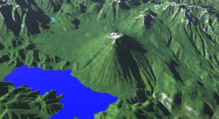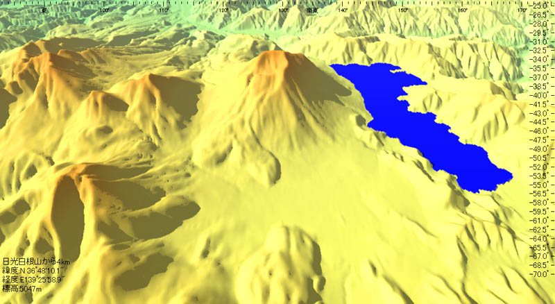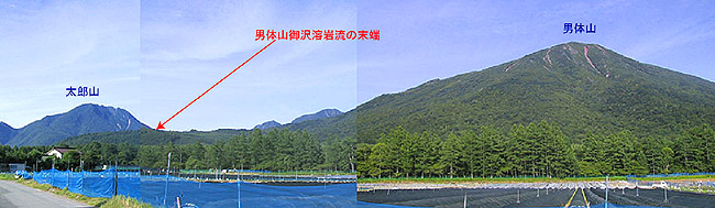 男体山の爆裂火口と火口から流れ出た御沢溶岩流です。