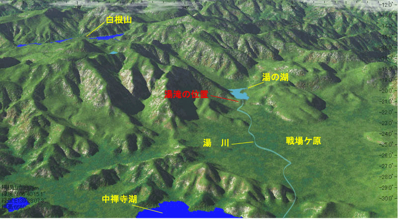 湯の湖から湯滝を流れ落ち、湯川を下り、竜頭の滝をへて中禅寺湖(ちゅうぜんじこ)に注いでいます。