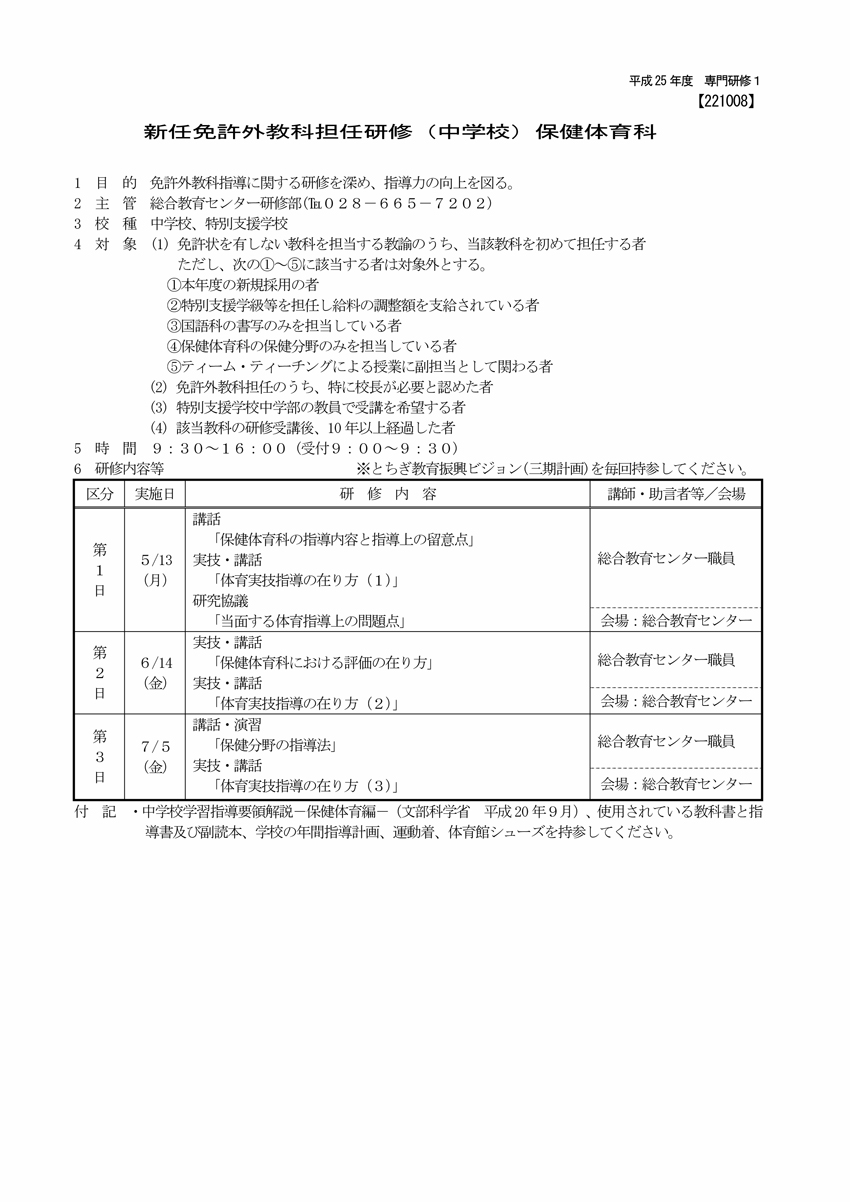 平成25年度 新任免許外教科担任研修(中)保体