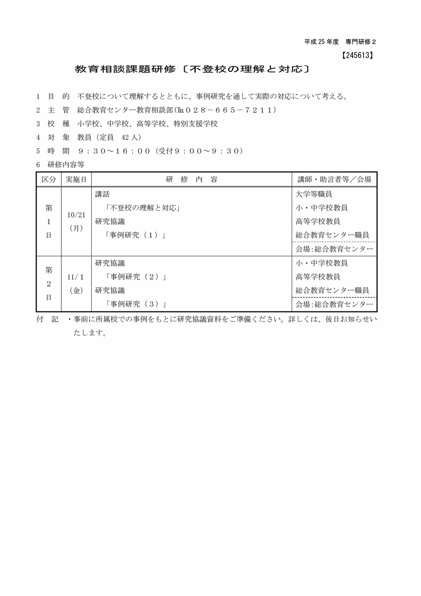 平成25年度 研修事業開催要項(高・特)