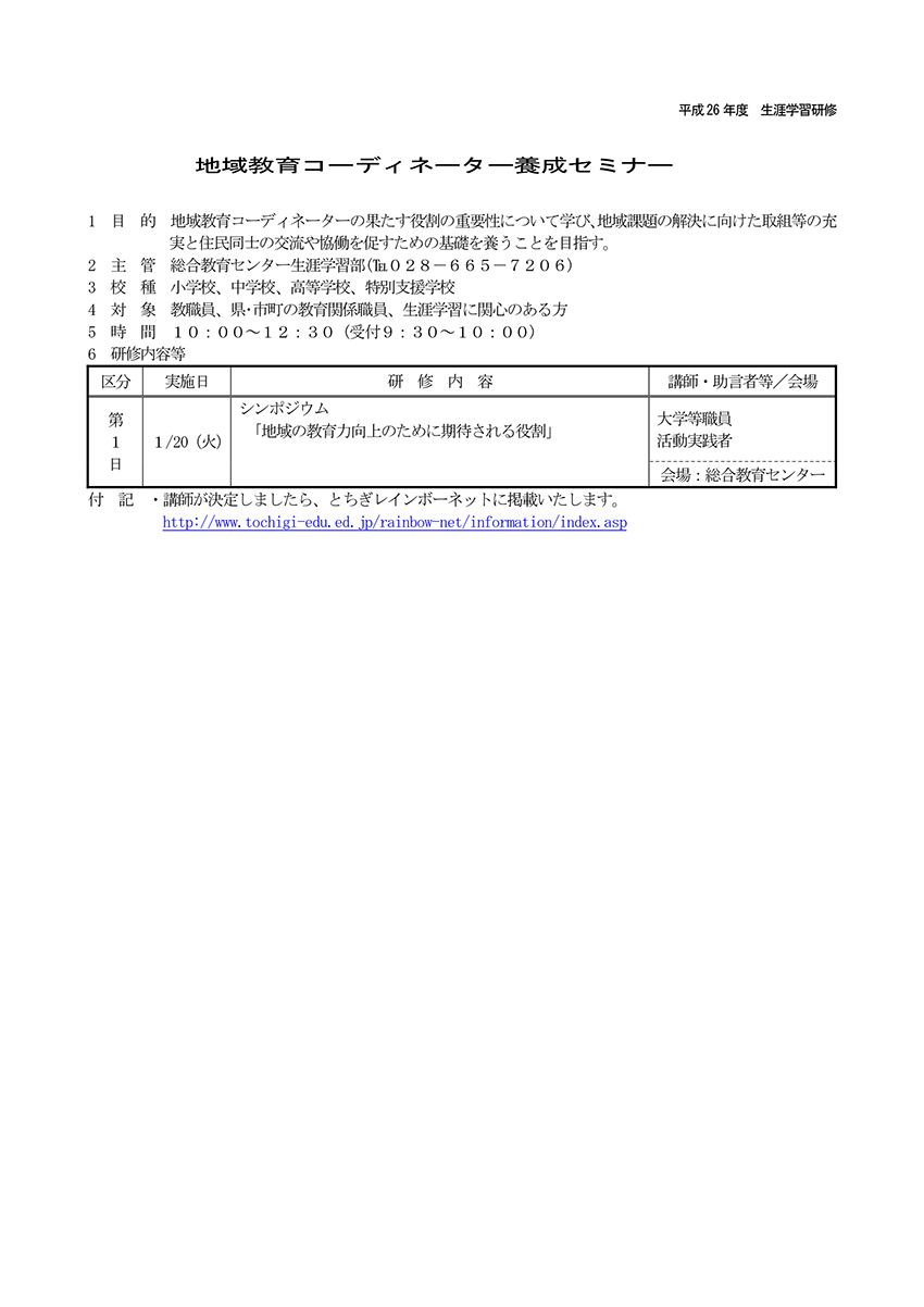 平成26年度 地域教育コーディネーター養成セミナー