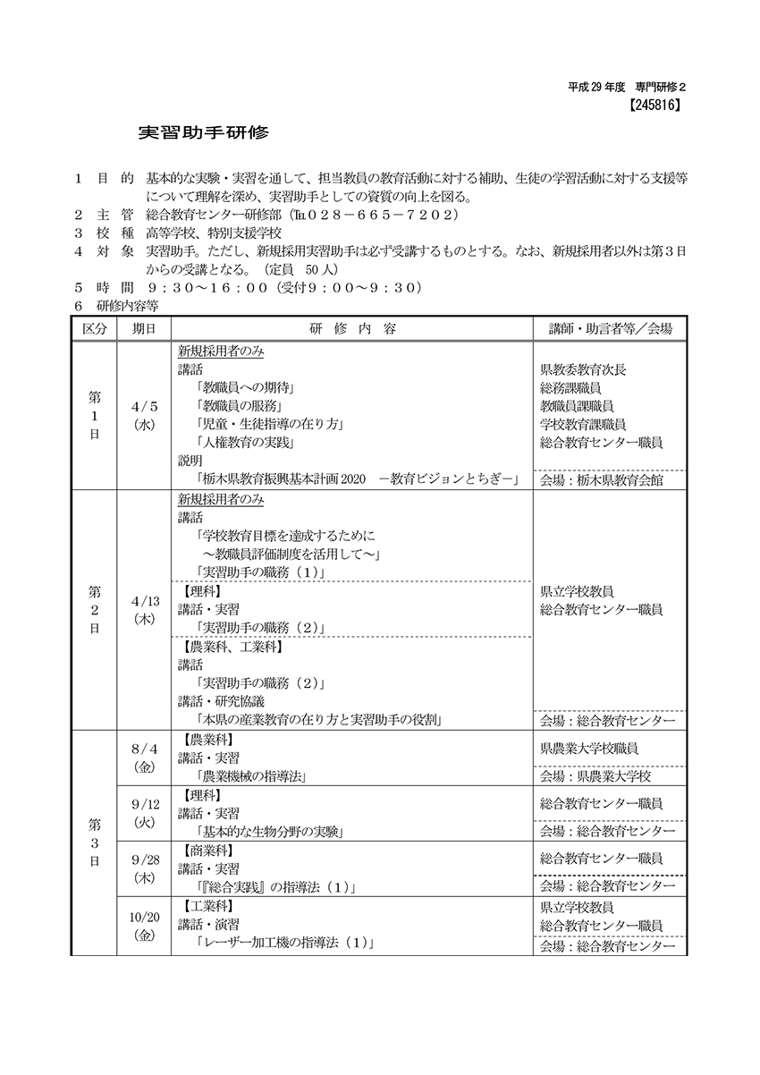 平成29年度 研修事業開催要項(高・特)