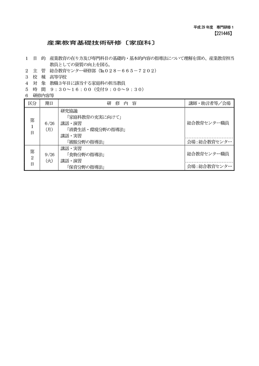 平成29年度 産業教育基礎技術研修〔家庭科〕