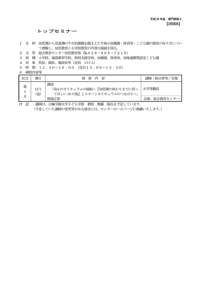 平成29年度 トップセミナー