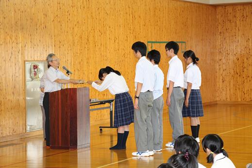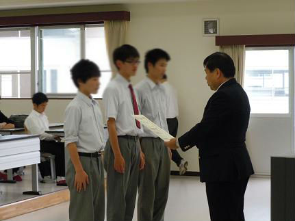 受賞伝達式・全国大会へ出場する生徒への壮行会が行われました。