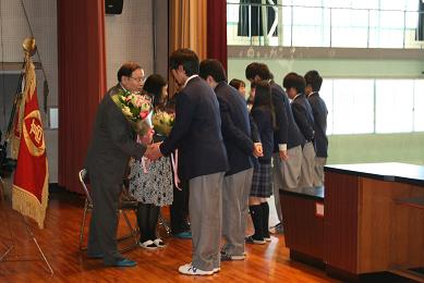 離任式が行われ、橋本前校長をはじめ、7人の先生方に離任の言葉をいただきました。