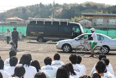 鹿沼市長をはじめ、地域の方々、本校生徒が参加・見学しました。また、スタントによる