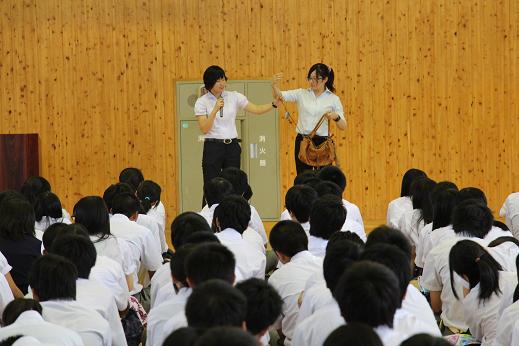 民間講師招へい事業が実施され、3年生を対象にビジネスマナーの講習が行われました。