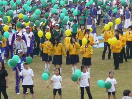 11月5日(土)から8日(火)までの日程で、本県において第24回全国スポーツ・レクリエーション祭が実施されましたが、5日の開会式には本校1年生57名がプラカード担当として参加いたしました。