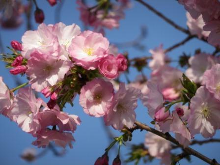 紅豊(べにゆたか) 官舎側にあり、北海道生まれの色鮮やかな桜です。撮影4/4
