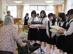 「ホームタウンほそや」は特別養護老人ホームで50名の方が入所していました。家庭生活を意識した施設は、7名~9名でユニットを形成しており、各ユニット毎に家庭のようなリビングダイニングがあり、ひとりひとりの個性を尊重した生活をしていました。入所者で交流した方々はみなさん穏やかで笑顔の素敵な方ばかりでした。この体験を通して、介護という大変さとやりがいを感じることができました。また機会があったらぜひ行きたいと思います。 (3年Yさんの感想より一部抜粋)