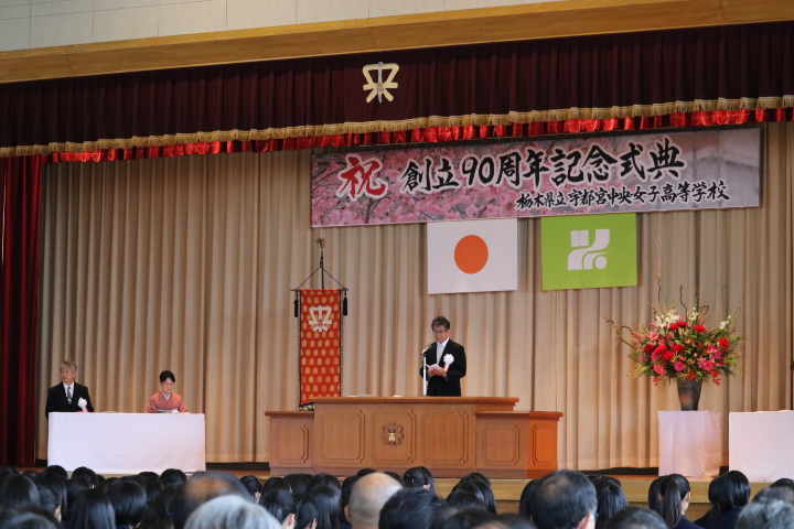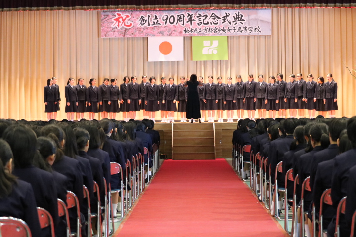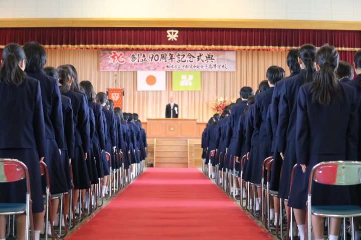 4年後に男女共学となる本校にとって、女子高として最後の周年行事となることから、準備・運営に生徒が積極的に関わり、司会も放送部の生徒が務めるなど、本校の90周年式典にふさわしいものとなりました。
