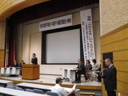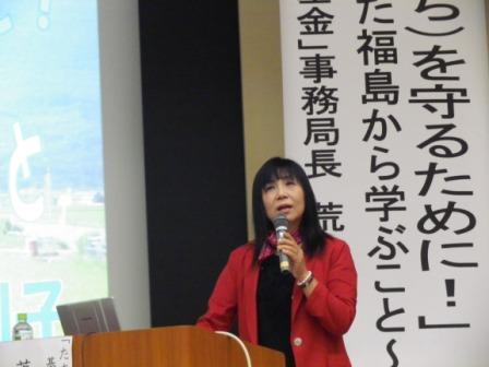 講演は、「たまきはる福島基金」事務局長の荒由利子氏にお願いしました。元高校の教員であり、ご自身も大熊町で被災された荒事務局長は、「大切な命を守るために!~多重災害を受けた福島から学ぶこと~」と題する講演をとおし、福島の未来を見据えた活動を粘り強く展開していきたいと語られ、災害に強い社会を作るには、日頃の備えとともに、リーダーシップを身につけた人材の育成を強調されました。多くの方が、災害に備え、今すべきことに気づかされたことと思います。