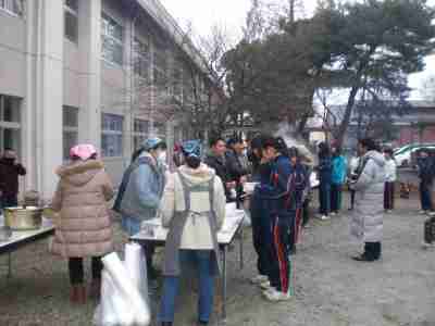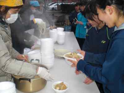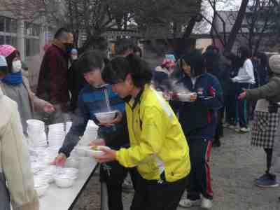1/20(金)、寒稽古の最終日にPTA活動として、教文委員会と役員の皆さんによる豚汁うどんとお汁粉の提供がありました。前日の準備、当日は早朝からの準備と大変お疲れ様でした。とてもおいしく、生徒は大喜びでした。