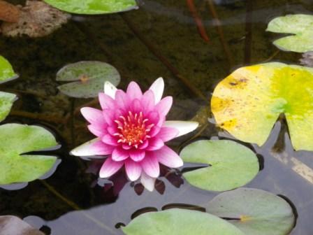 噴水池の愛らしいスイレンが疲れを癒してくれます。