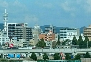 11時頃。姫路駅近くの車窓から姫路城が見えました。