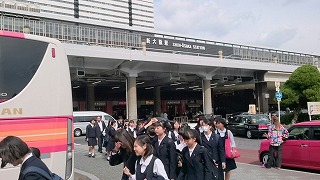 新大阪駅に到着!!ここからクラスごとにバスで移動しました。