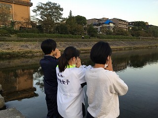 昨日と同じく朝練からスタート。今日は鴨川の川べりで体を動かしました。