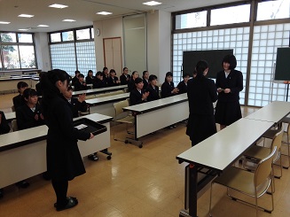 全国大会に出場する合唱部とフェンシング部の活躍を祈り、壮行会が開催されました。生徒全員での開催が難しいため、生徒会役員により会議室で行いました。