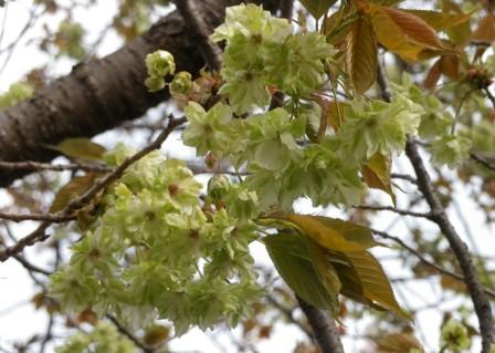 御衣黄(ぎょいこう) 緑の桜です。銀杏並木から7本目にあります。撮影4/15