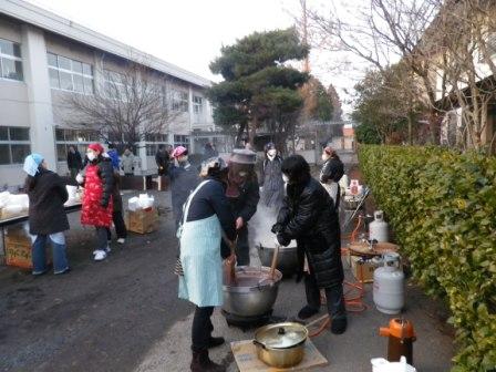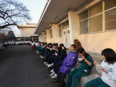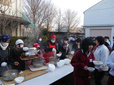 1月25日(金)寒稽古を締めくくる恒例の豚汁うどんとお汁粉の提供が行われた。