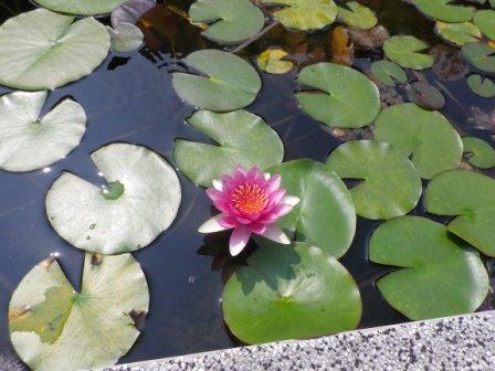池には、疲れを癒す睡蓮の紅い花が咲いていました。