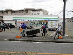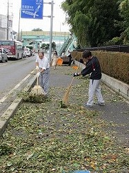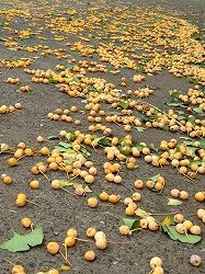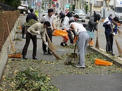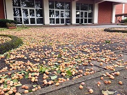 銀杏並木のギンナンが、たくさん落ちて並木の下を埋め尽くしました。また、学校の前の歩道や車道には、校庭の樹木の葉が散乱しましたので、職員総出で清掃活動を行いました。ご近所に方々には大変ご迷惑をお掛けし、申し訳ありませんでした。