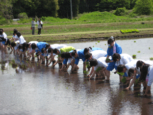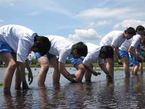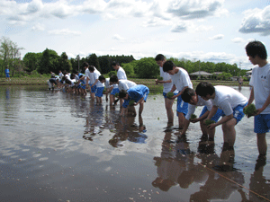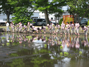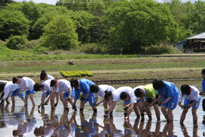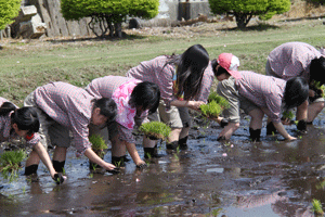 今年も一年生が高根沢農場へ行って田植えをしてきました。