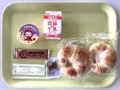 【非常食体験】クロワッサン とちあいかジャム アセロラゼリー ココアウエハース 牛乳