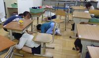 10月14日(火)13:10~緊急地震速報訓練を行いました。今年度3回目の訓練で、事前周知なしの実施だったため、まだ食堂に残っている学級や教室で食後の片付けをしている学級、教室で歯磨きや着替えの準備をしている学級など、様々な状況でしたが、緊急地震速報訓練の放送を聞き、自ら机の下に入って安全確保のための「カエルのポーズ」をとったり、教師の言葉掛けを受けて頭を守ろうとしたり、教師の支援を受けて頭を保護したりして、落ち着いて訓練に取り組むことができていました。今後も訓練を継続していくことで、大きな地震がきたときに、自らの安全を守ることができるようにしていきたいです。