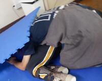 机足を両方の手でもって、両ひざを床につけて、しっかり身を守ります