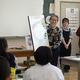 課題研究で製作した本校創立130周年を記念したファッションデザイン画について、平岩様へプレゼンを行い、「歴史と伝統のある学校らしさと、着てみたいと思わせる工夫がされていますね。」とご講評いただきました。