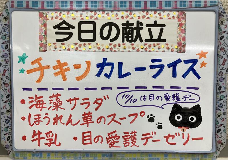 目が見えることへの感謝や、日常生活で目を守る行動について意識する大切な日だとされています!今日のゼリーには視力の維持に効果があるといわれるビタミンAがはいっています。日ごろから目を大切にしていますか?気になる人は眼科を受診してメンテナンスすることも大事です