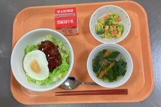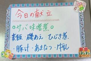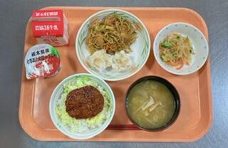 給食では数種類の野菜が入っている焼売を中濃ソースで食べました。