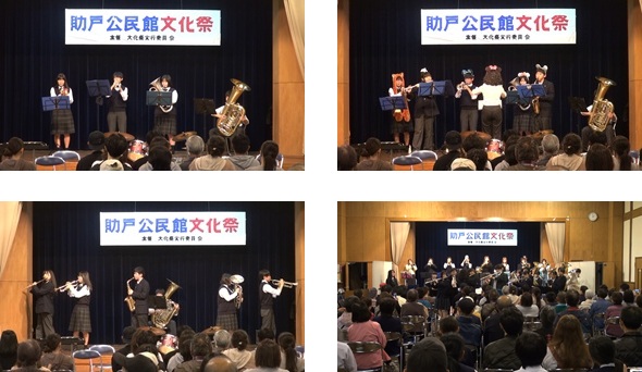 本校は今まで練習してきた、金管アンサンブル「千と千尋の神隠し」メドレー、「アンダー・ザ・シー」、「ぼよよん行進曲」を披露しました。「アンダー・ザ・シー」ではみんなでディズニーキャラクターの被り物等をして演奏しました。また、「ぼよよん行進曲」ではお客様が手拍子を入れて下さり一緒に音楽を楽しんで頂けたようでした。