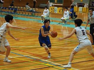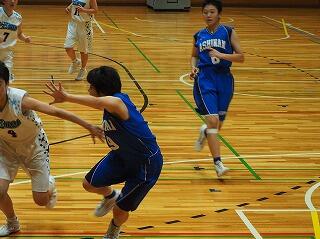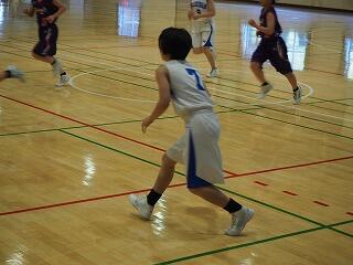 足利女子高校に練習してきたマンツーマンのディフェンスを試みました。手の使い方が不十分で何度も反則をとられてしまいました。
