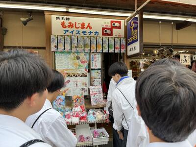 生徒たちはお土産を購入したり、牡蠣やもみじ饅頭などの名物を堪能したりしていました。