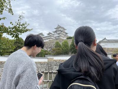 生徒たちは現存の天守閣に圧倒されていました。