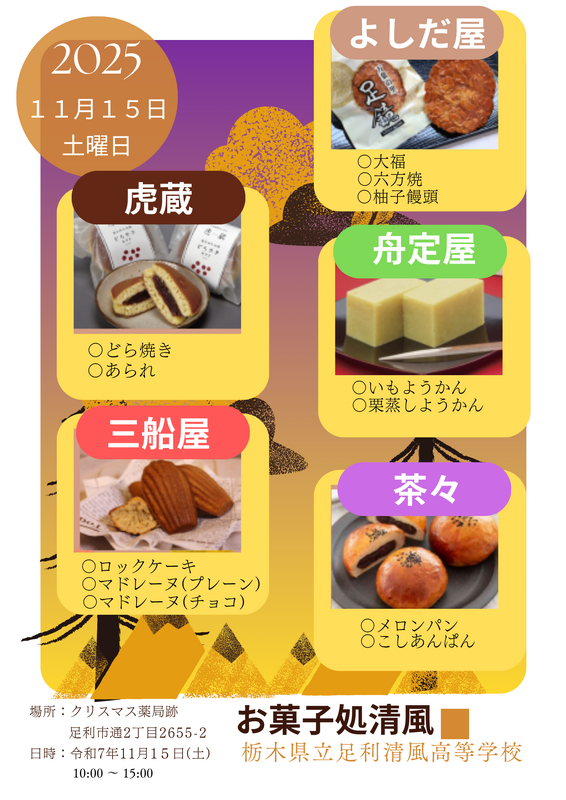 チャレンジショップについて② 投稿日時 : 11/12 管理者 チャレンジショップまで残り3日となりました。 チラシに掲載されている足利市の銘菓の他に、ビジネス研究部、商業科3年生が考案した 商品など多数取り揃えてお待ちしております。お時間がありましたら、是非おこしください。 {{options.likeCount}} {{options.likeCount}}