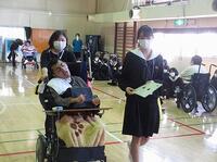 毎年高等部生が、年中さん、年長さんのクラスを訪問して、ダンスやゲーム、読み聞かせをして交流をしています。今年は、年中さんのクラスで「ハッピーソング」のダンス、「〇✖クイズ」、年長さんのクラスで「ちゅーとちょーのくだものさがし」の紙芝居読み聞かせ、「じゃんけん列車」を行いました。年中さんも年長さんも、交流の最後に元気いっぱいの歌のプレゼントをしてくれました。