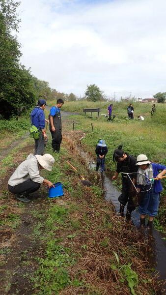 このイベントは、大田原市民を中心に一般の希望者を対象として、湧水と引用水からなる善勝川の生物調査を行う恒例行事です。参加者は大人から小学生までの10名で4つのグループに分かれ、私たち4名がそれぞれグループに入り、一緒に水生生物の採集を行いました。時には採れた生物の名前、種類、生態などを話しながら、大田原市の素晴らしい自然や生命に触れ、素敵な時間を過ごすことができました。