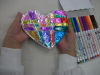 工作は、きらきらの飾りを作りました。よく選んでたくさん色を塗りました。。