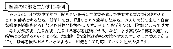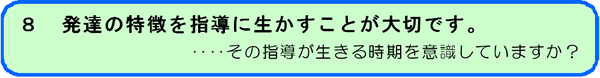 発達の特徴や発達課題を意識して、その時期に適した指導を心がけましょう。 -