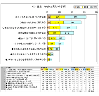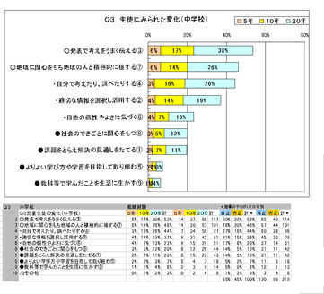 - Q3 「総合的な学習の時間」を実施する以前と比べて、児童生徒には、どのような変化がありましたか。(複数回答)