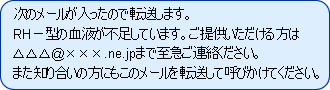 c. 転送しないし、こんなメールは転送するなと友人を注意する。2. このメールの内容が真実で、あなたの血液型もRH-型だとしたら、あなたはどのように対応しますか。該当する番号に○を付けてください。