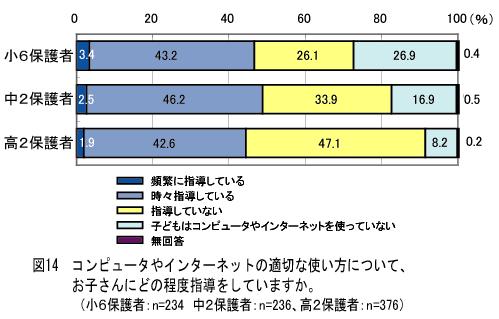 コンピュータやインターネットの適切な使い方について、お子さんにどの程度指導していますか。(図14参照)