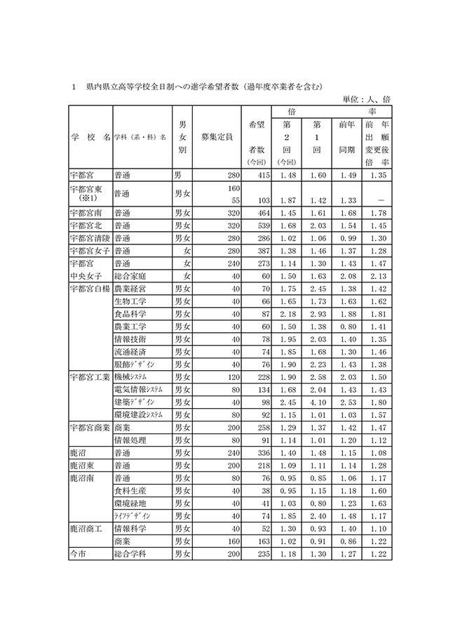県内県立高等学校全日制への進学希望者数(過年度卒業者を含む) - データのダウンロード