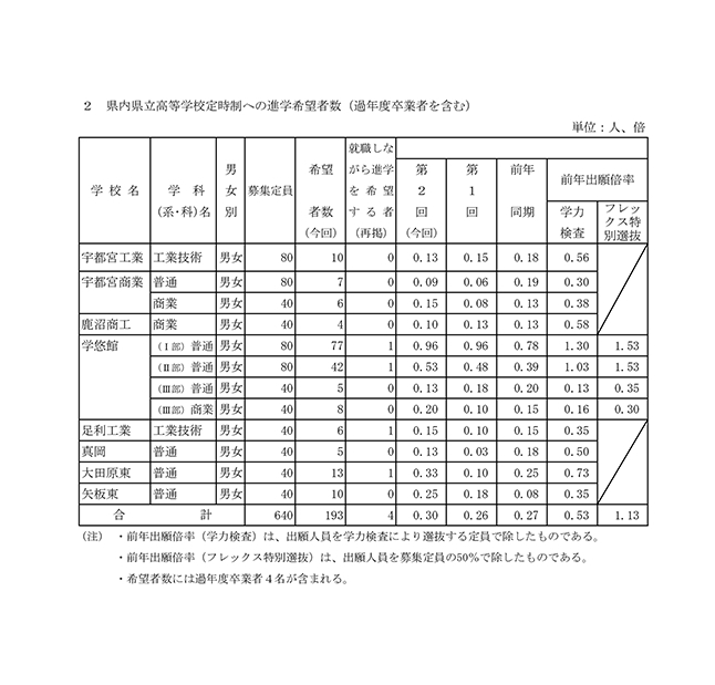- 県内県立高等学校定時制への進学希望者数(過年度卒業者を含む)
