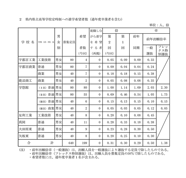 - 県内県立高等学校定時制への進学希望者数(過年度卒業者を含む)