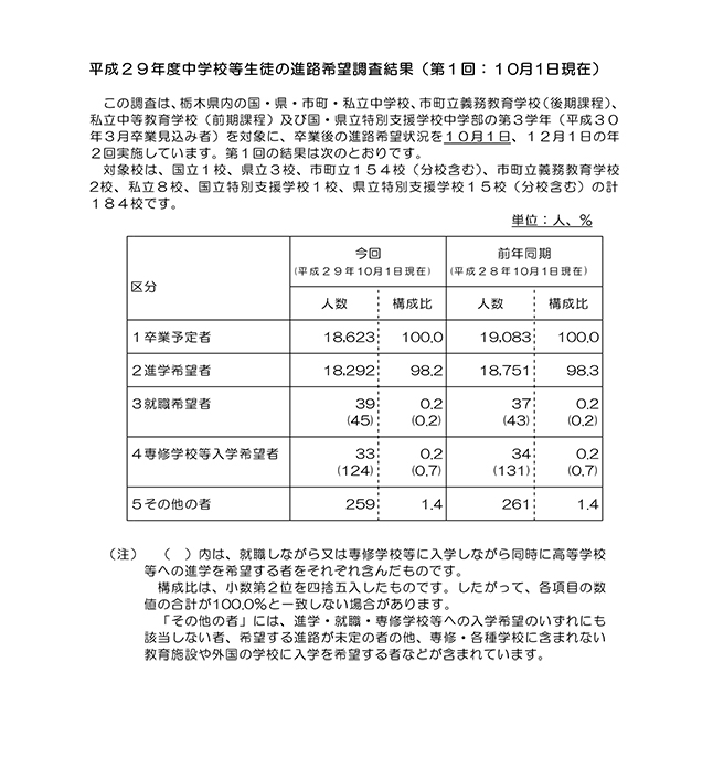 - 平成29年度 中学校等生徒の進路希望調査報告書(第1回:平成29年10月1日現在)